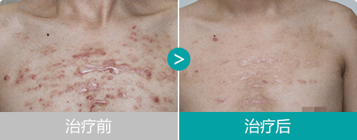 2. 病症:疤痕体质,胸背部大面积疤痕疙瘩