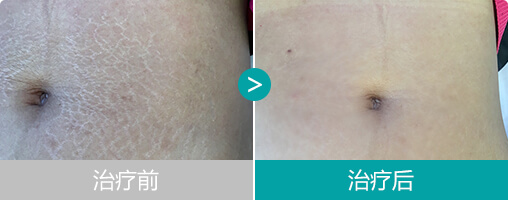 治疗前,患者肚子上的妊娠纹很清晰,纹路密实,肚皮比较松弛,来乐桥治疗几个疗程后,皮肤恢复白皙,纹路明显变淡...... [详细]