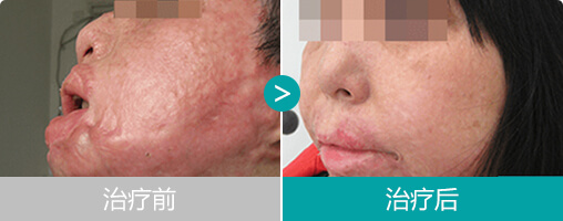 经女士不慎被化学品烧伤颜面部,创面愈合后愈合面增厚隆起,下颌部、颈部增生严重,以至于口角牵拉变形,张口困难...... [详细]